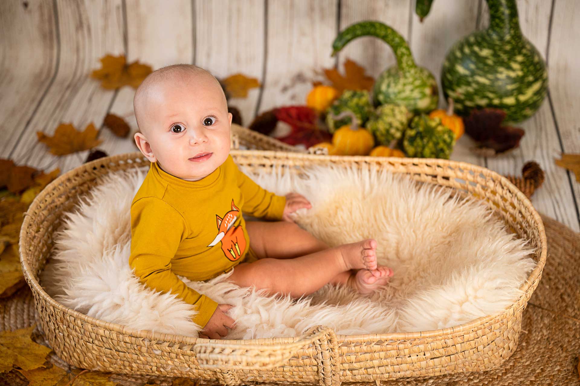 Latem sesje pełne kwiatów, słoneczników i owoców.